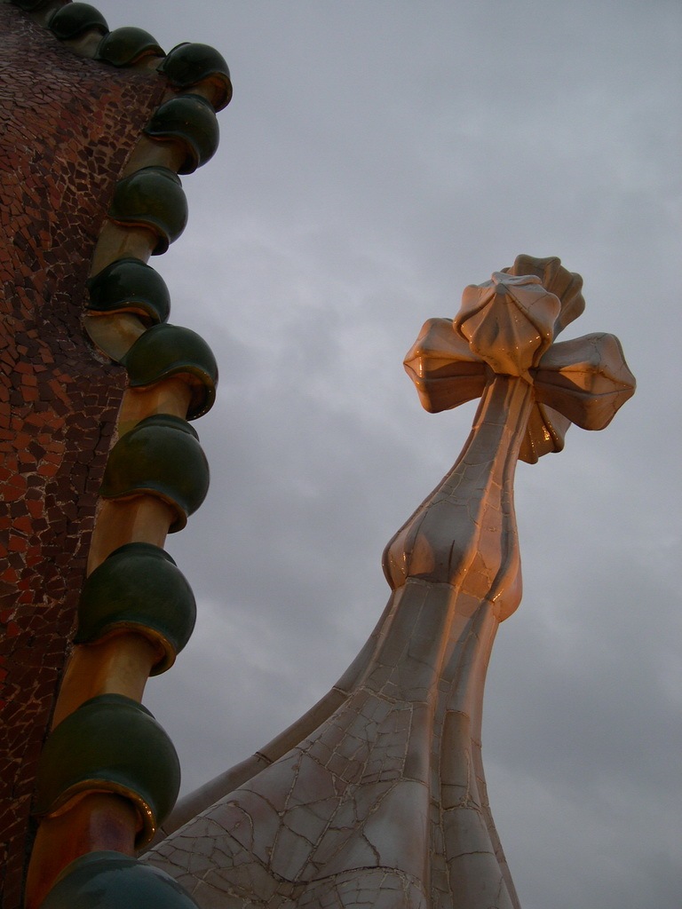 Gaudì realizza qui un capolavoro scultoreo in ferro forgiato, il materiale a lui più congeniale. Lo costruisce, come la gran parte dei suoi progetti in ferro, nell’officina del fabbro Joan Ofìés. Il drago e l’albero di mele dorate, in cima al pilastro su cui si incardina il cancello, fanno dei Pabellones de la Finca Güell la suggestiva metafora architettonica di un mito greco, l’ultima fatica di Ercole che ruba le mele d’oro dal giardino delle Esperidi. Il mito è narrato da un sacerdote e poeta, amico di Güell e di Gaudí, Jacinto Verdaguer, nel poema epico “L’Atlàntida”, dedicato al marchese di Comillas, di cui il sacerdote è guida spirituale. In esso egli celebra origini mitiche e grandiosi destini del popolo catalano.